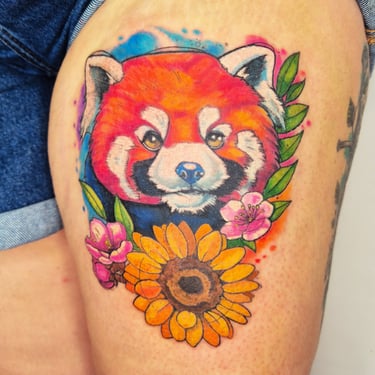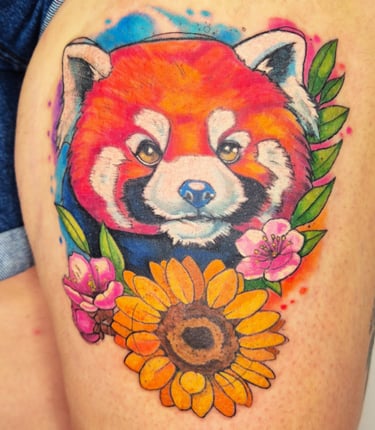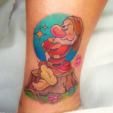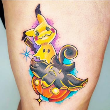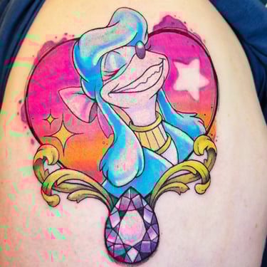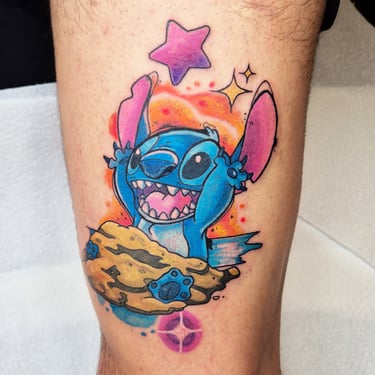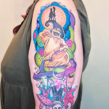 I love tattooing Disney, Anime, video games and even illustrative gothic blackwork! So if colour isn't your flavour I still got you! I've been tattooing now for almost a decade, having moved to London right before Covid... I'm still here and still decorating bodies with fun and quirky stuff!
