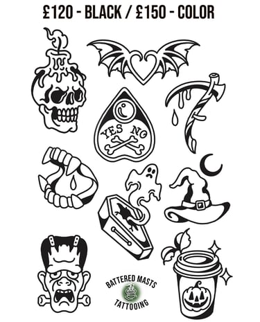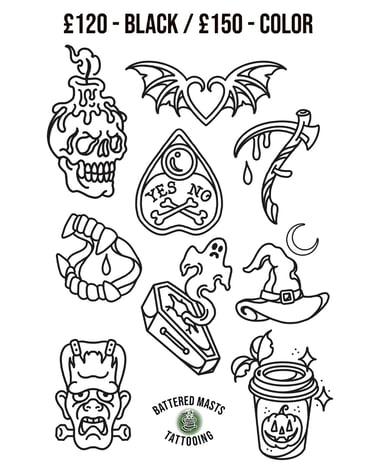 Our artists have created a selection of exclusive flash designs ready for these spooky days.