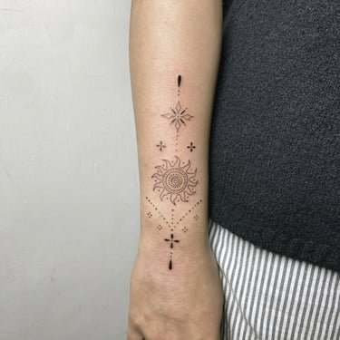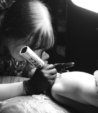 Liza is a talented tattoo artist from Ukraine, now based in London. She specialises in fine line and small tattoos, known for their delicate, ornamental, and beautifully detailed designs. Liza’s work combines precision with a soft, graceful aesthetic — creating timeless pieces that feel both subtle and striking.